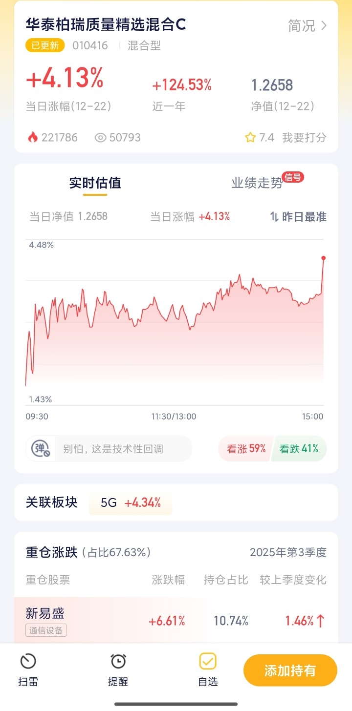 今天打开行情软件,5G板块的红盘直接亮瞎眼,好几个核心标的涨幅都超了5个点,妥妥的领涨全场!这背后的逻辑很简单,5G作为新基建的核心,现在正朝着更深度的应用阶段迈进,不管是工业互联网还是车联网,都得靠它打底,市场需求摆在这儿,行情自然差不了。但说实话,个股波动太大,万一踩错节奏很容易被套。我最近一直在关注华泰柏瑞,它的选股思路很对胃口,专挑那些质量过硬的公司,把5G这类优质赛道的机会都囊括进去,既能跟上行情,又不用承担个股的高风险,对于追求稳健的朋友来说,这波配置真的很靠谱。$华泰柏瑞质量精选混合C$
