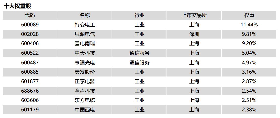 恰如其名,指数中电网设备行业占比接近80%,更涵盖了输变电设备、电网自动化设备、线缆、配电设备等核心环节。