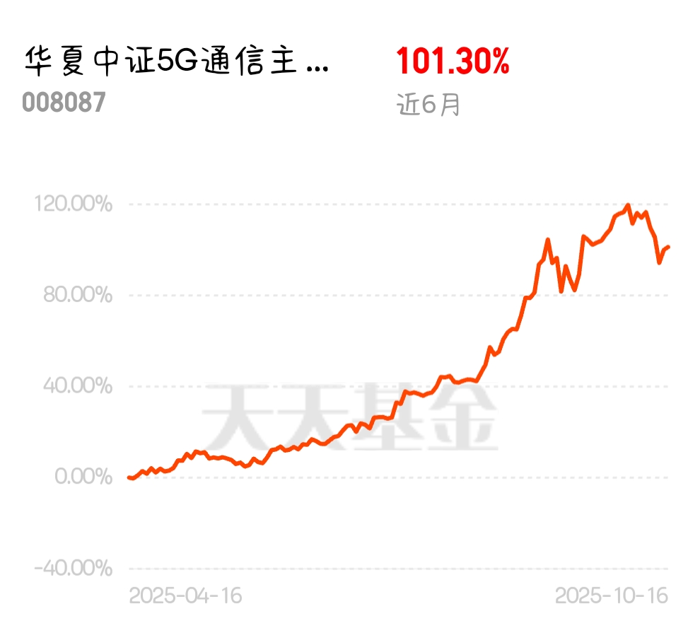 伙伴们,推荐你们关注这基,夏普比率2.14,远超93%的同类,近6个月收益100%+,同类前15名,增收避险兼具$华夏中证5G通信主题ETF联接C$