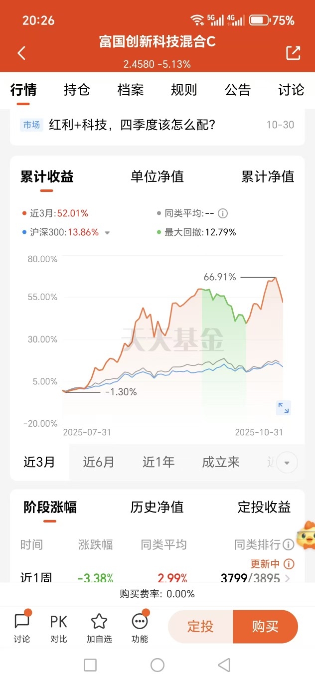 持仓德邦鑫星价值A的同时,我悄悄配了富国创新科技C重仓光模块、AI算力、半导体这些高景气方向,近3个月涨了62%,6个月翻倍还多,周胜率超61%,拿得住才赚得到!