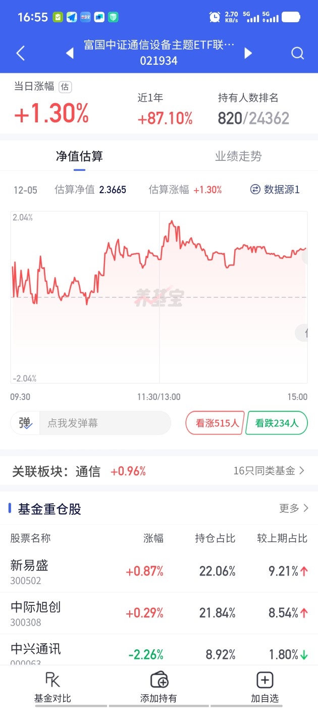 $富国中证通信设备主题ETF发起式联接A$ 021934指数基金弹性比较大,调整也差不多了,继续逢低布局吧!