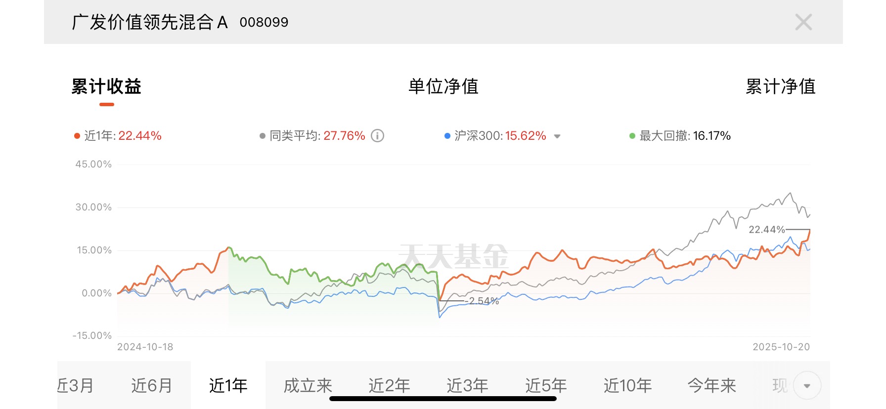基金经理能力挺不错的,看$广发价值领先混合A$这只近一周涨幅已经冲高超7%了!