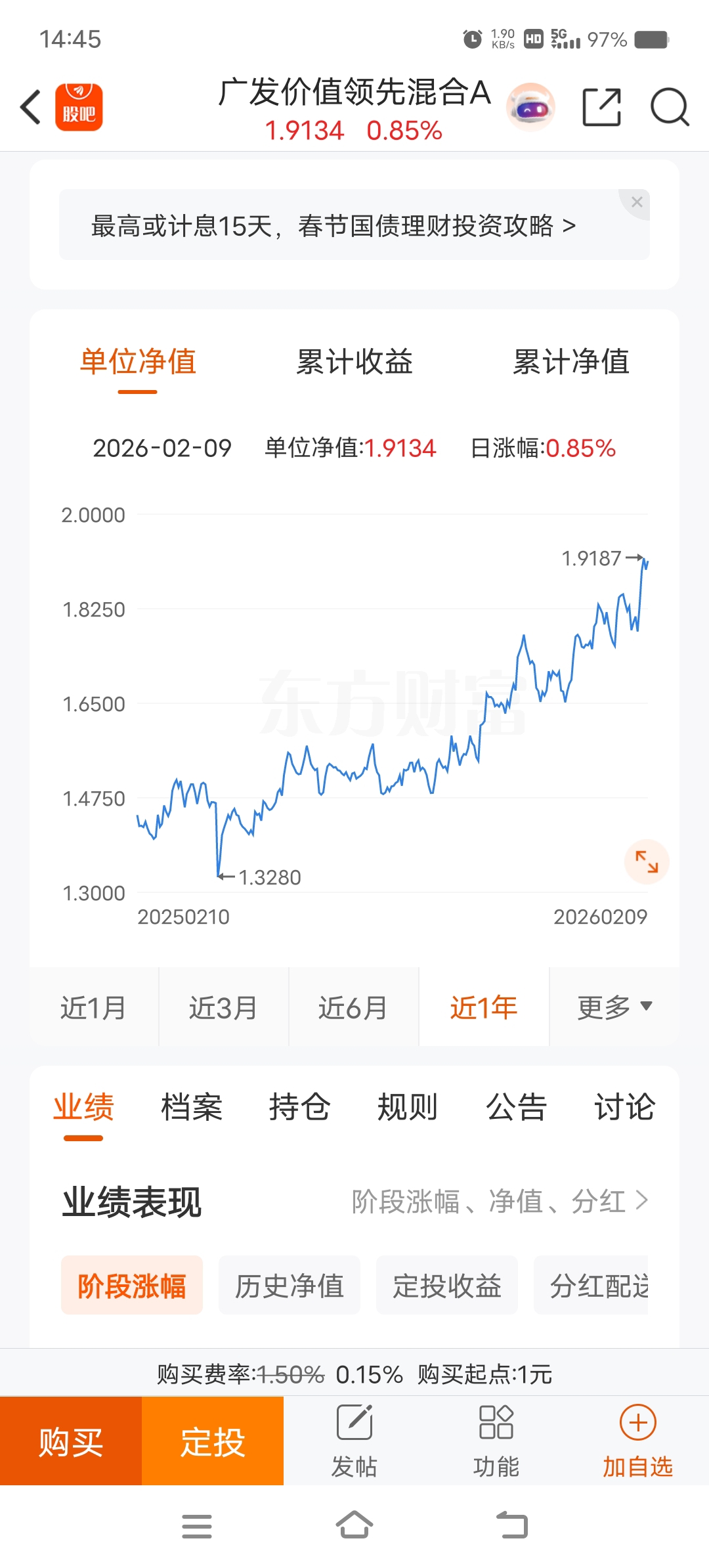 $广发价值领先混合A(OTCFUND|008099)$ 年前这波回调,好多人都说行情结束了。我倒觉得,对民航这种周期股来说,回调可能是在“留空间”。它重仓的航空股,正好趁这机会再洗洗盘