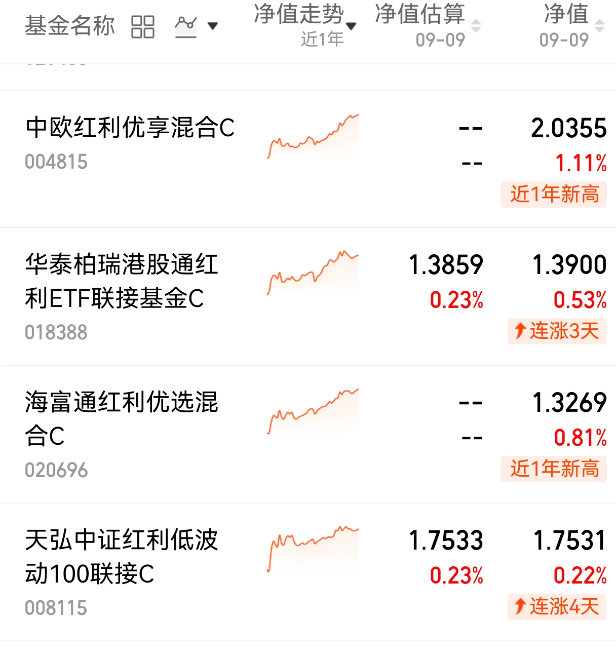 $华泰柏瑞港股通红利ETF联接基金C(OTCFUND|018388)$涨幅0.53%