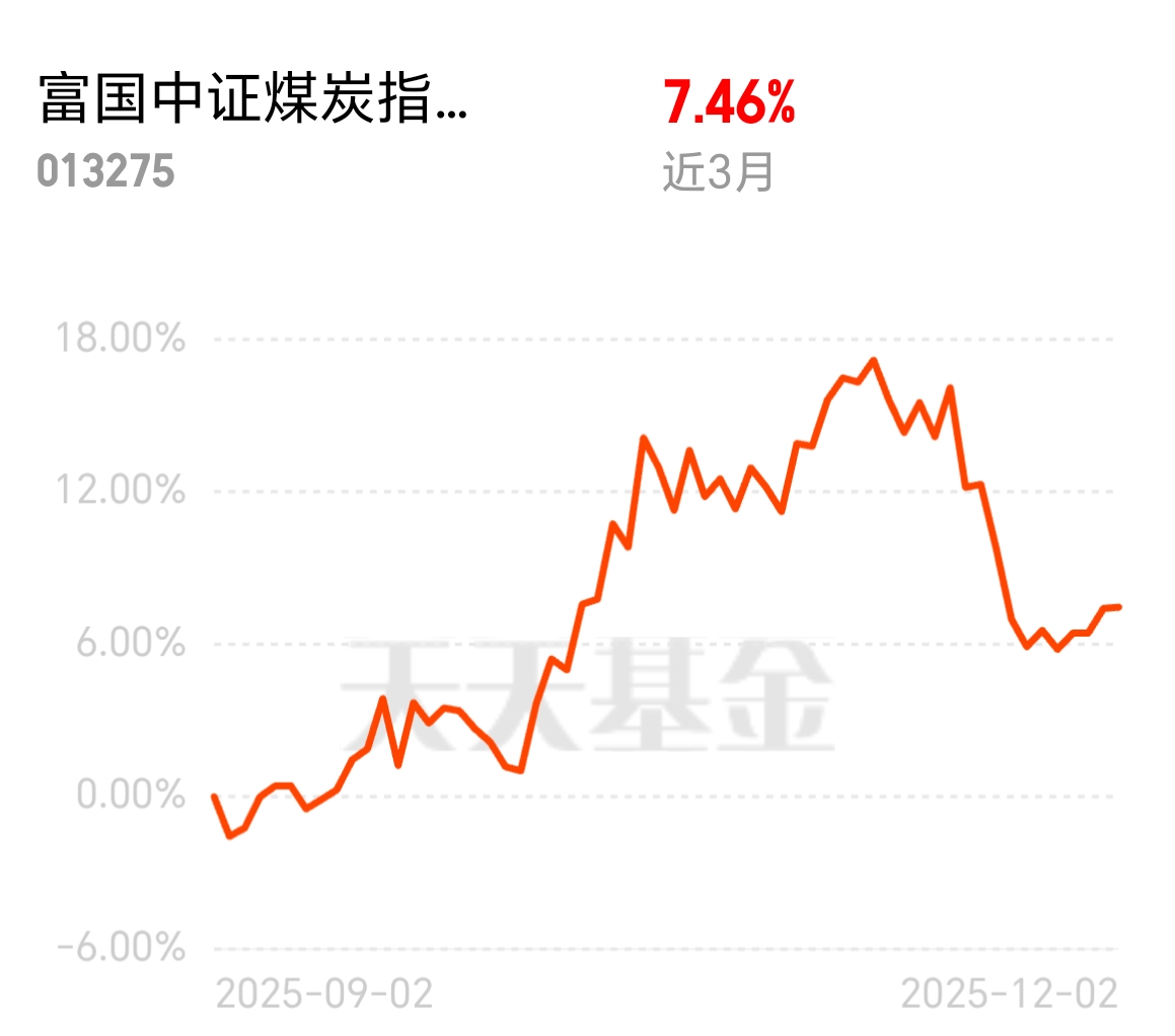 近期红利低波有点平淡,转而关注富国中证煤炭C,它聚焦央企煤炭龙头,顺周期+高分红挺扛波动;近3个月涨7%,超过同类,0.44%跟踪误差很紧,老将操盘11年,回撤修复也快。