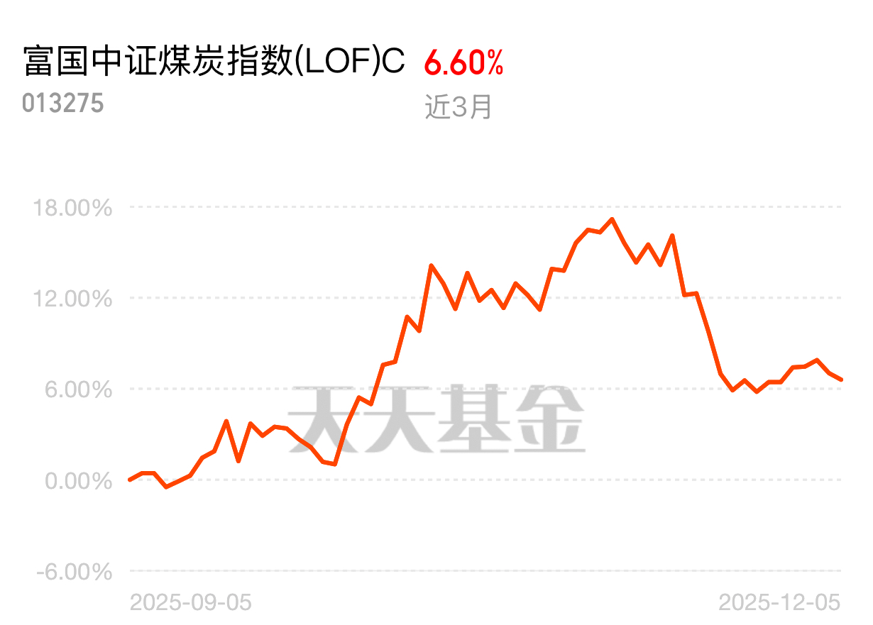 当前红利低波动一直磨人,转头看富国中证煤炭C近3个月涨了7%,领先多数同类;持仓全是陕西煤业、中国神华这些央企煤炭龙头,顺周期+高分红,冬天用电高峰来了,煤炭价格也稳住了,拿它对冲一下挺拿得住。