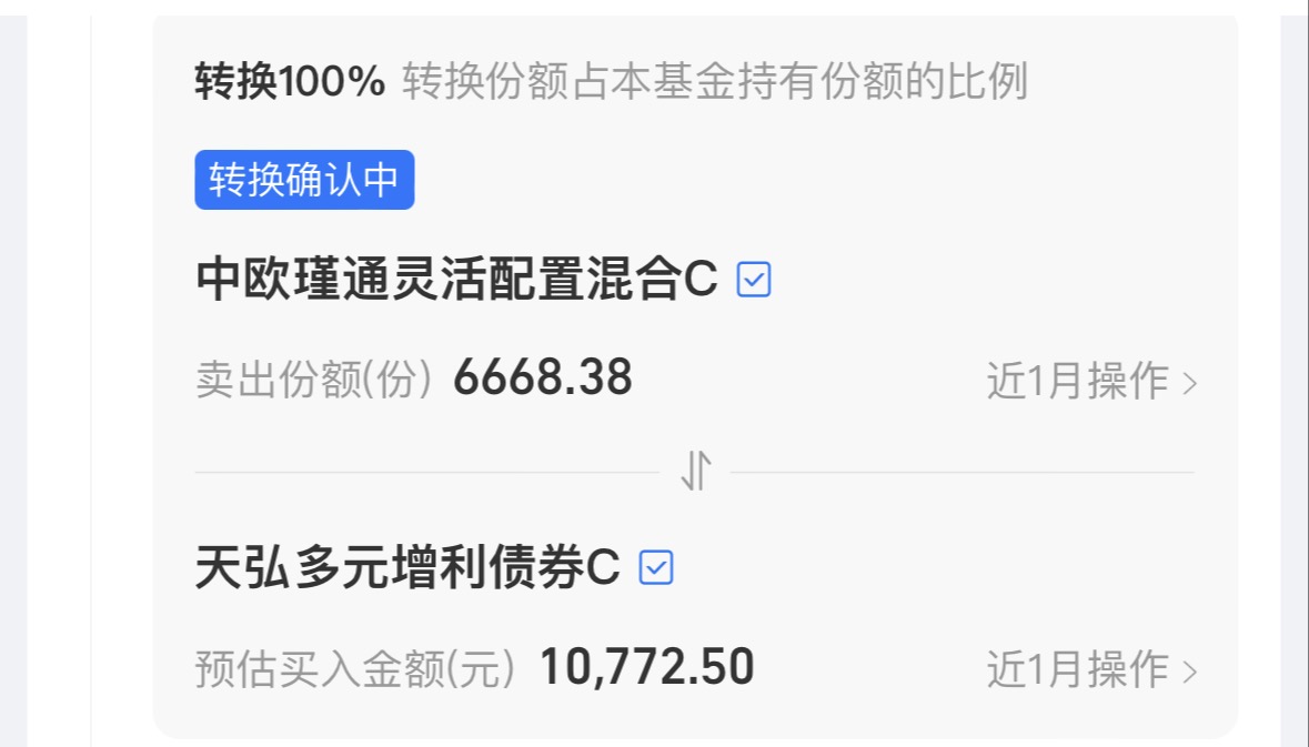 $天弘多元增利债券C$ +1W,本月股债轮动还是比较快的,回望本年的市场,股市整体表现还是要好一些,不过股基回撤比较大,涨跌都是几个点,遇上连续的回调容易拿不住,固收+策略是股债均衡搭配,所以性价比相对会比较高。今天继续补仓一笔天弘多元增利债券C,它是一只中波固收+,其中信用债占比74.30%,搭配了19.01%的股票+8.32%的可转债进行收益增强,今年来收蛋582个,控制回撤的同时业绩也不错,我今天再定投一笔。