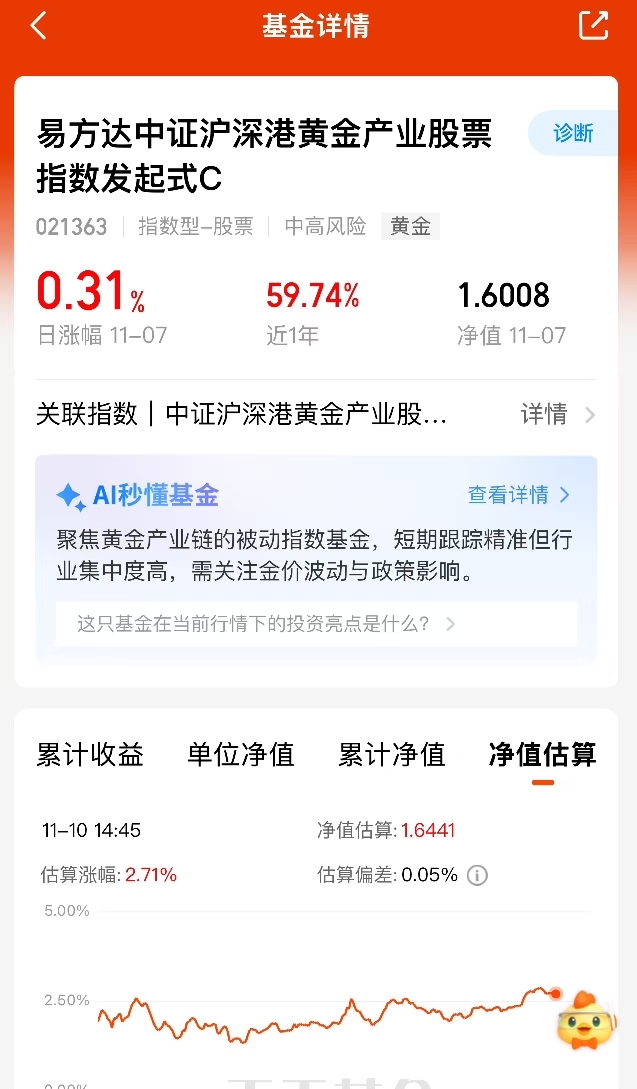 今天黄金涨疯了都,这只比同类基金收益高,加仓走起不耽误$易方达中证沪深港黄金产业股票指数发起式C$