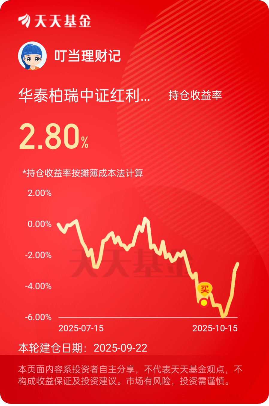 在市场风格再平衡过程中,$华泰柏瑞中证红利低波ETF联接C$ 连续6日走强。稳定分红与低估值提供双重安全边际,配置正当时。#晒收益#
