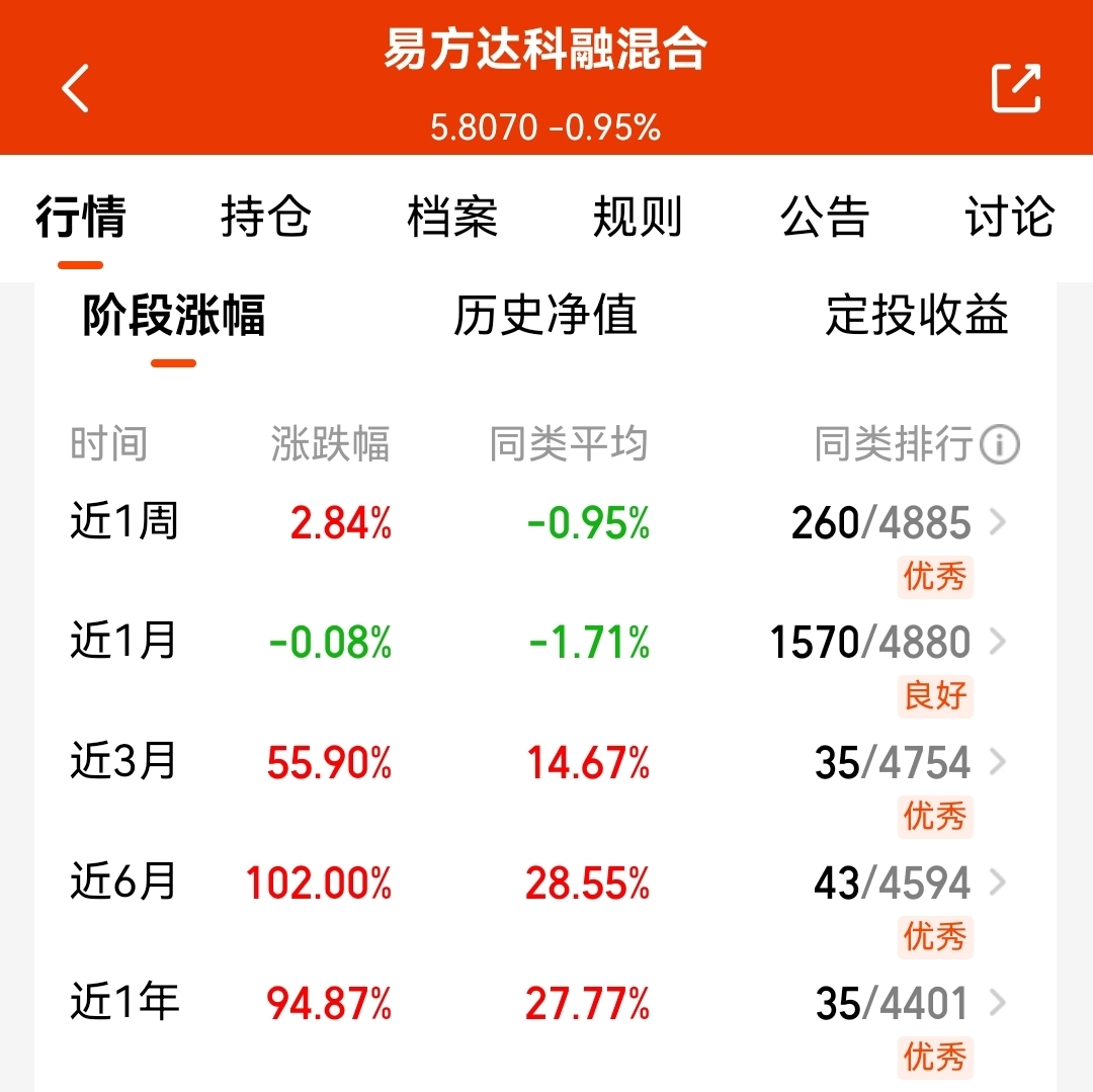受贸易摩擦风险,近期资金风险偏好降低,加上板块轮动较快,不好把握,所以我今天继续看这支$易方达科融混合$ ,相比于押注单一科技赛道,比如CPO,近期回撤就比较大,赚钱确实很难;