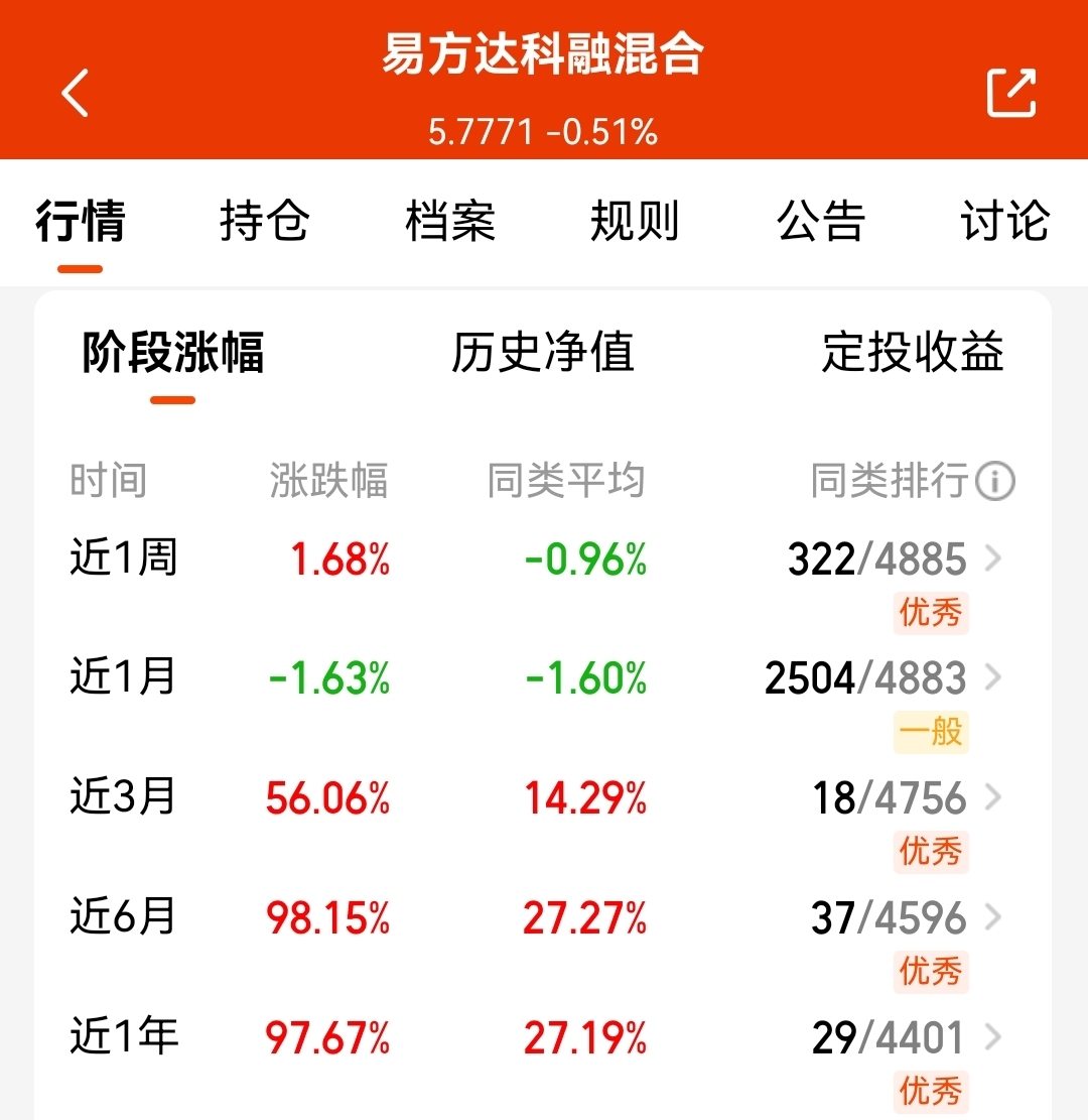 科技板块行情虽在,但相比于押注单一科技赛道(像CPO这样的),回撤风险太高,而这支$易方达科融混合$ 持仓通信,电子,新能源等各大板块,分散布局,我觉得也更能对冲市场波动风险了;