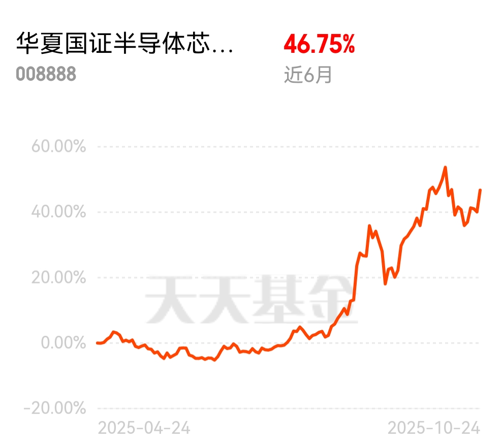 今日又是半导体领涨的一天,上周五单日上涨4.76%,今天继续反弹,近6个月收益46.75%,这基的行业属性强,上车时机不错$华夏国证半导体芯片ETF联接C$