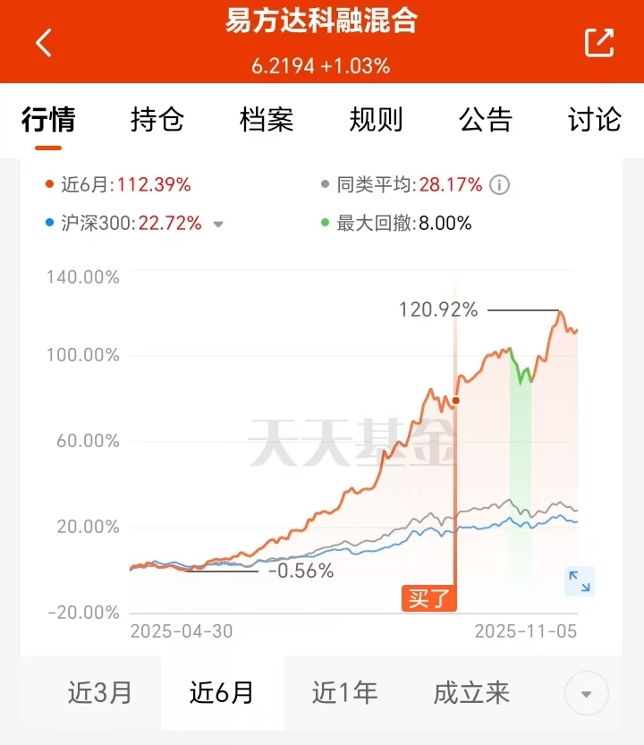 之前就留意的易方达科融混合,持仓科技、新能源、军工,刚好适配现在的节奏。它回撤控制靠谱、业绩稳,还被很多机构持有,专业人士都认可,我打算入手啦。