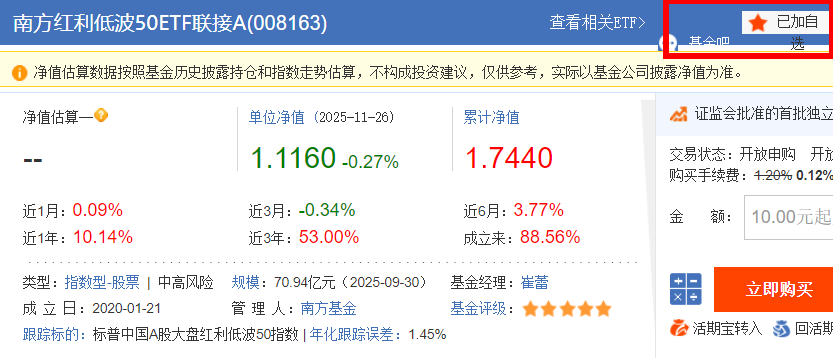 对比同类产品,2025 年以来,华夏中证红利低波 ETF 联接 A 净值涨幅 10.1%,与指数偏离度 - 0.4%;易方达中证红利低波 ETF 联接 A 净值涨幅 10.0%,偏离度 - 0.5%,南方 A 类的跟踪精度显著领先。