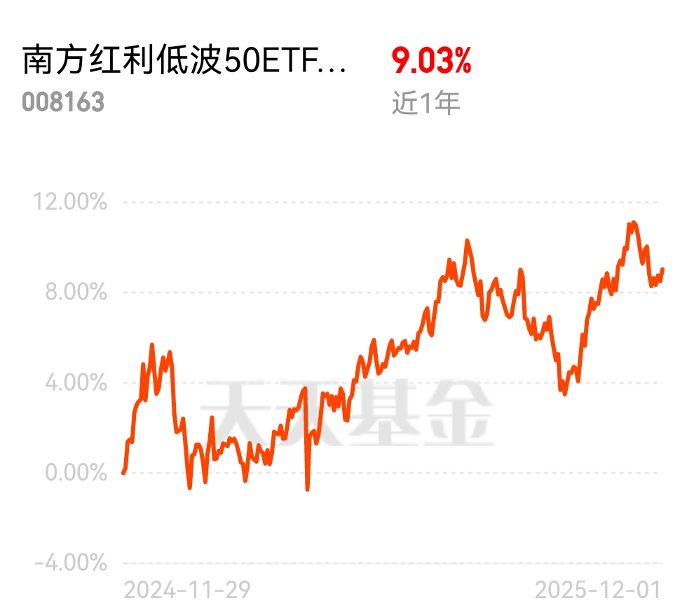 同时,红利基金走势比较平稳,拿$南方红利低波50ETF联接A$来说,近一年趋势总体向上,并且涨幅达到9%,比存银行一年的利息多得多!