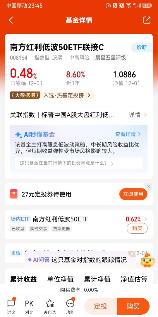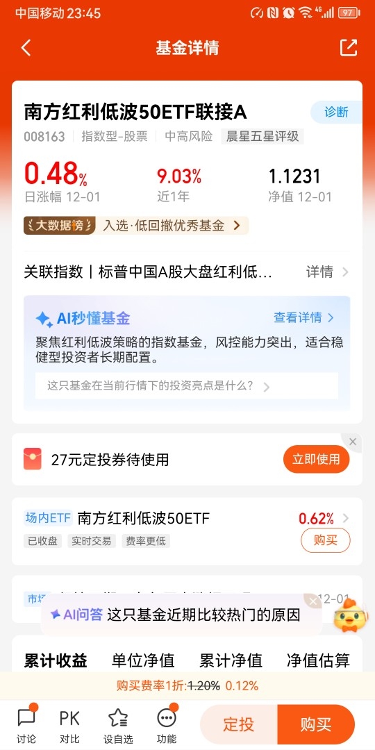 所以配置一些红利 是不错的,感兴趣的小伙伴可以关注一下@南方基金 关注$南方红利低波50ETF联接A$ $南方红利低波50ETF联接C$