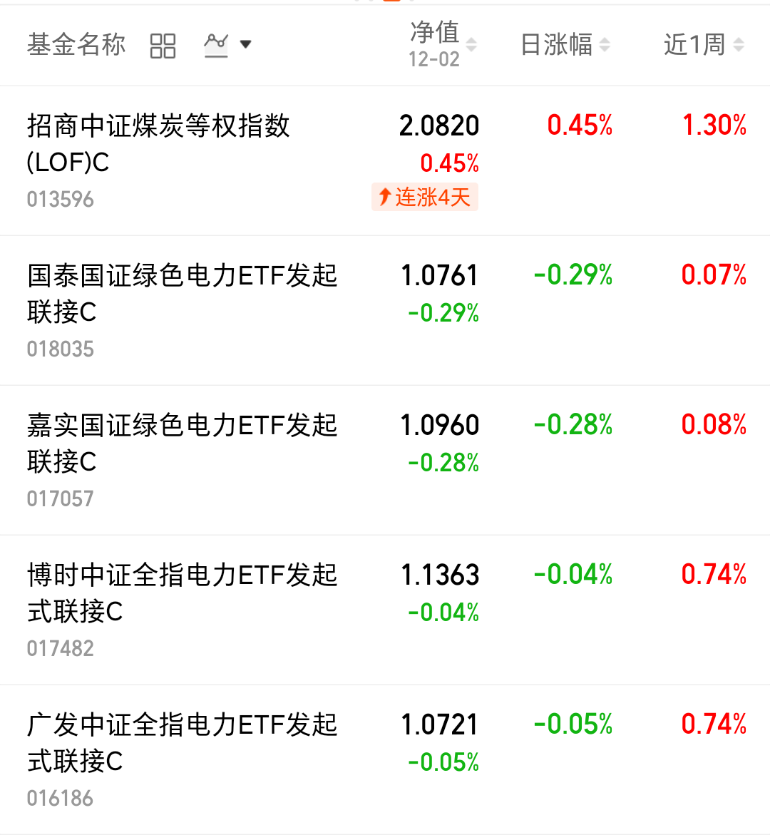 这两天股市行情调整,但是冷冬预期强化供需缺口,季节性因素带动煤炭需求增加,这两天逆势上涨呢。$招商中证煤炭等权指数(LOF)C(OTCFUND|013596)$昨天上涨0.45%,涨幅又拉升了。