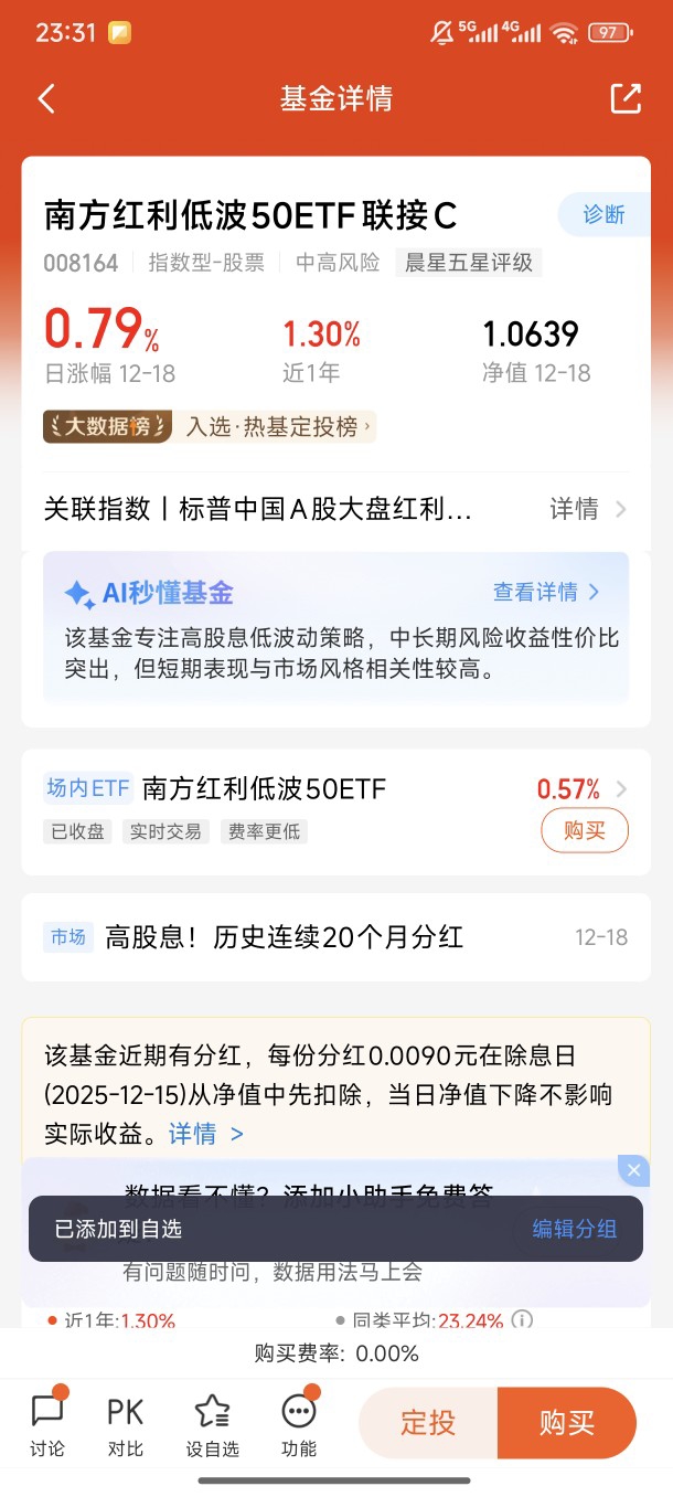 对于后续操作,我的规划很清晰:首先,将南方红利低波50ETF联接A 作为核心底仓,配置到家庭资产的15%-20%,对冲成长类资产的波动风险,尤其适合退休规划、低风险偏好的投资者;其次,利用当前板块回调的窗口期,启动每月定投,通过分批买入摊薄成本,避免择时难题,毕竟基金经理崔蕾也建议,当前区域适合通过定投积累底仓;最后,考虑到这只基金A类份额长期持有成本更低,我选择的是A类份额(008163),计划持有周期不少于2年,充分享受分红再投资的复利势能。