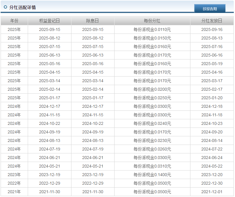 高频分红:成立来累计分红20次,每份派现0.56元。2025年保持月度分红节奏,1万元份额累计分红近千元。
