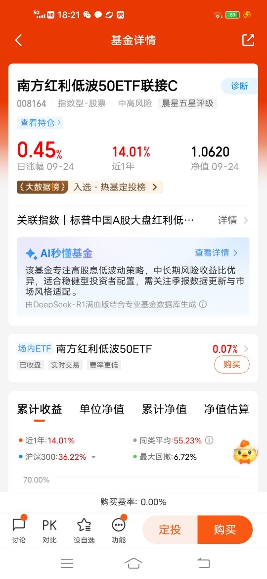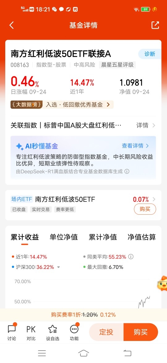 #晒秋分红节# $南方红利低波50ETF联接A$ $南方红利低波50ETF联接C$ ,资产配置的压舱石,长期价值投资的好选择!基金净值近五年上涨75.12%,大幅跑赢同类基金23.81%的平均涨幅,在1009只同类基金中排名前2%,表现非常亮眼!更厉害的是,创造了连续17个月分红记录,给投资者带来了价值投资、复利效应的好体验!