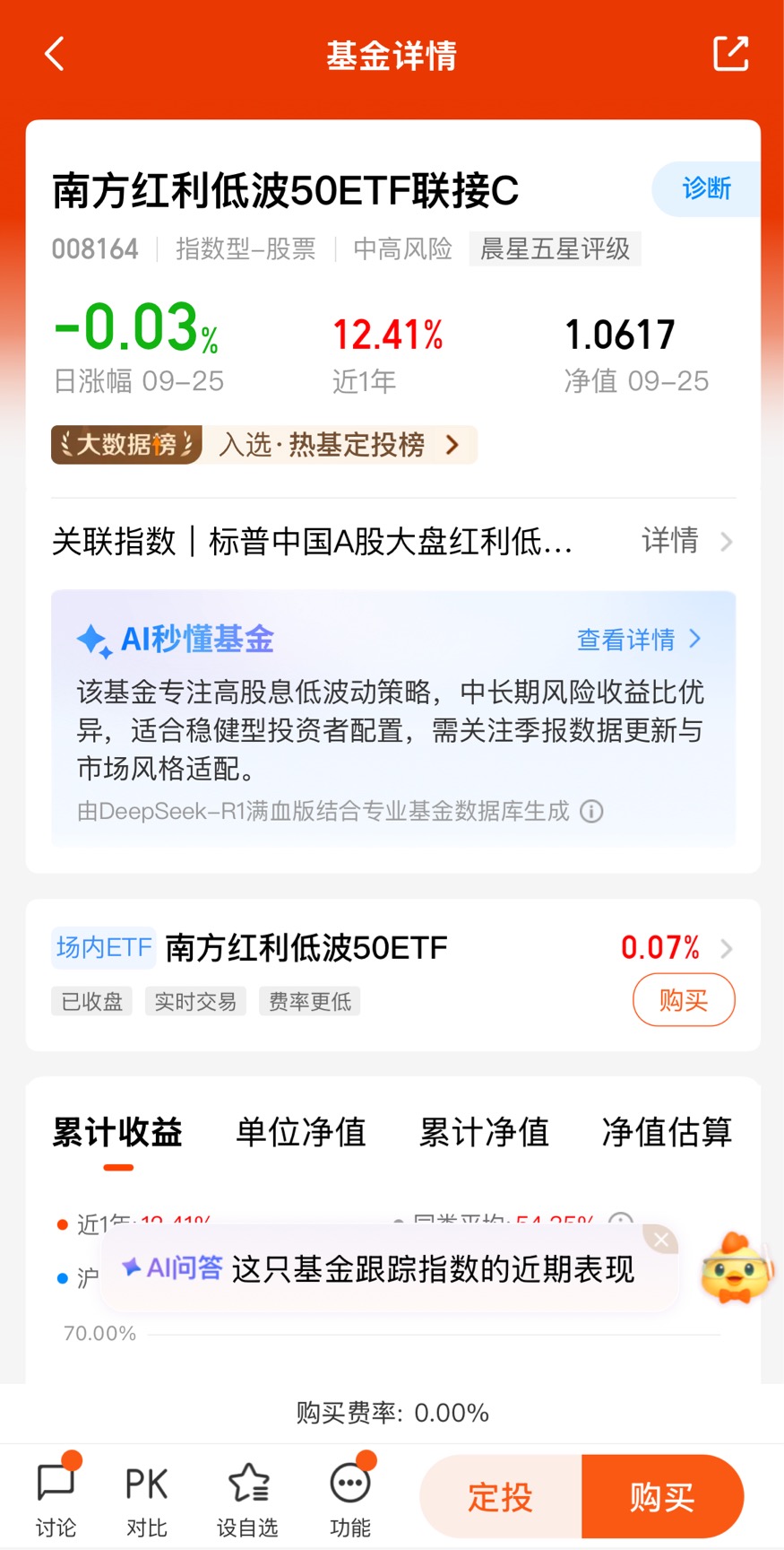 南方红利低波50ETF联接基金凭借“高股息打底+低波动护航”的双重优势,在2025年低利率与高波动并存的市场环境中,成为资产配置的“压舱石”。对于个人投资者而言,将其作为核心底仓,通过长期持有+分红再投资+动态调仓,可实现“收益稳、风险低、复利强”的投资目标。正如基金经理崔蕾所言:“不求乘风破浪之快,但求行稳致远之恒。”@南方基金