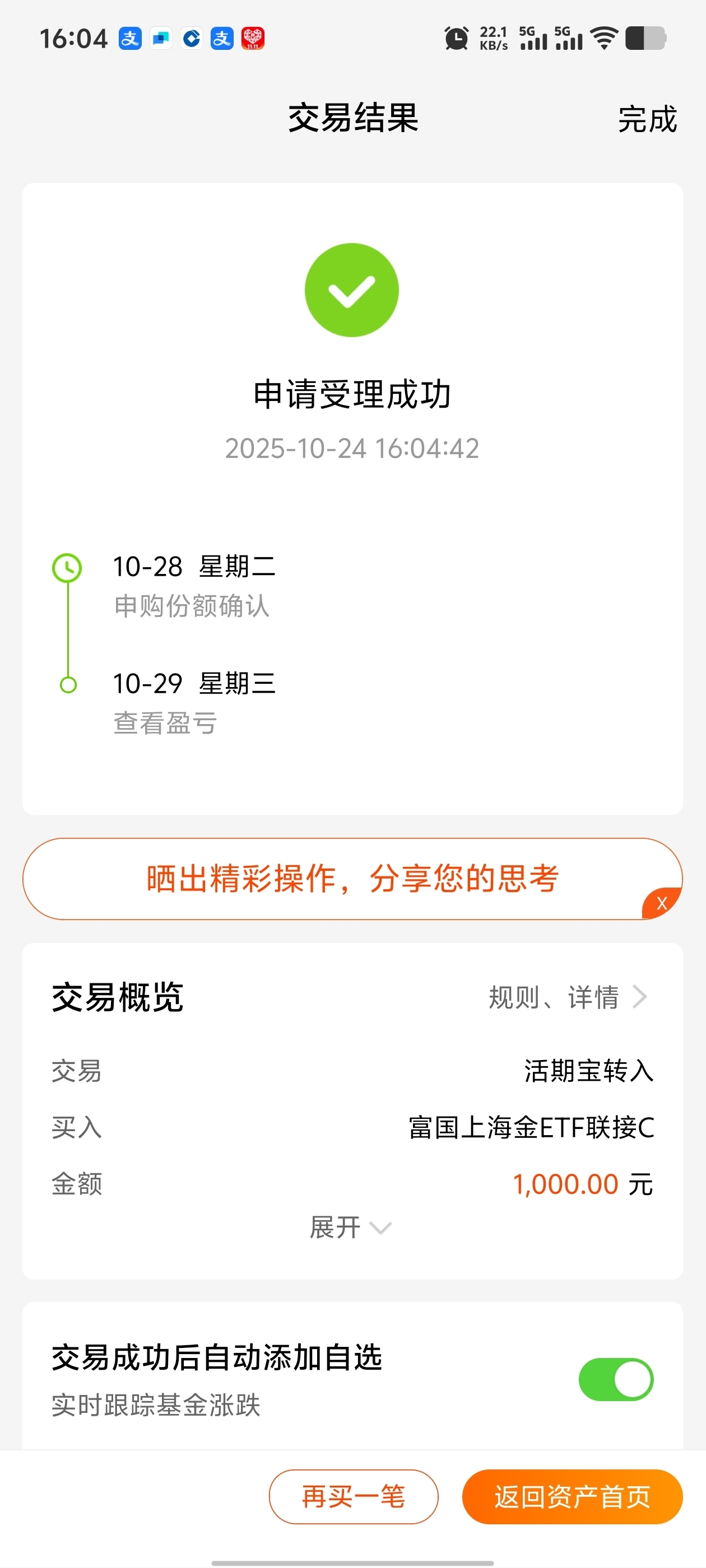 手里有南方红利低波50ETF联接C,最近顺手配了点富国上海金ETF联接C——老船