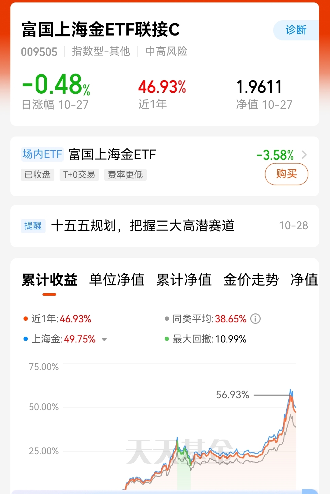 手里有南方红利低波C,也配了点富国上海金ETF联接C——黄金最近跑得挺稳,老基金