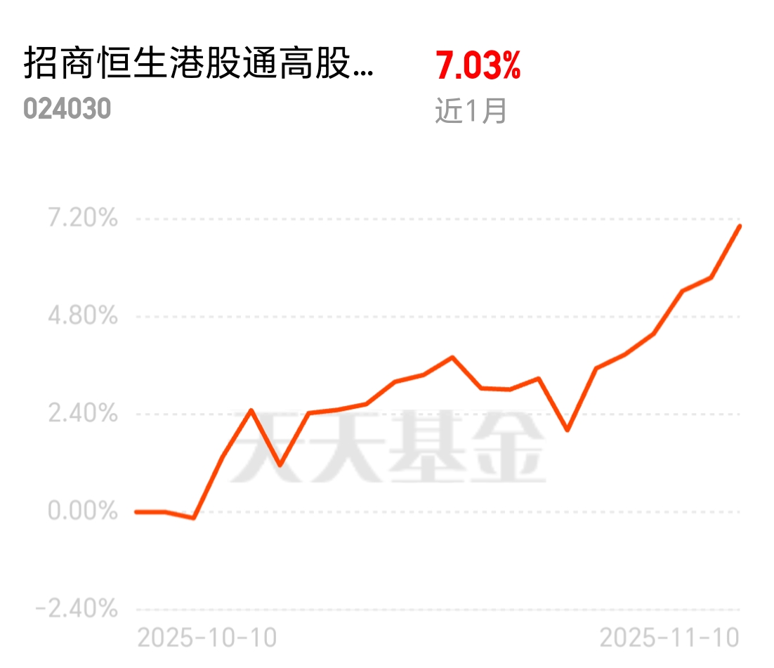 港股市场的资金面持续改善,推动资产价格上涨,招商恒生港股通高股息低波动ETF联接