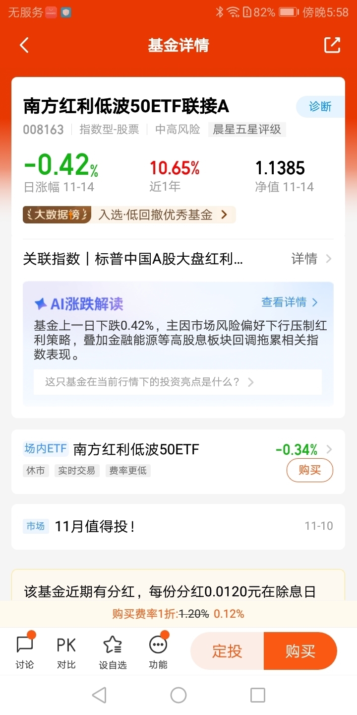 从2018年买入基金以来,经过这么多年的投资经验,我认为最适合我的是红利基金,也曾经买过那些涨幅比较大的基金,但说实话过山车的感觉一点都不好,我才想明白我追求的是每年都有稳定的收益,但波动不大的基金,最终红利低波风格的基金才是我想要的,长期持有收益比较稳定,这种基金才是最适合基民的,慢就是快,时间会证明一切的。$南方红利低波50ETF联接C$ @南方基金