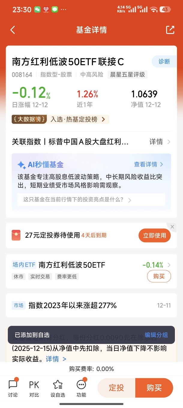 #观点搭子团火热招募中!# $南方红利低波50ETF联接C$