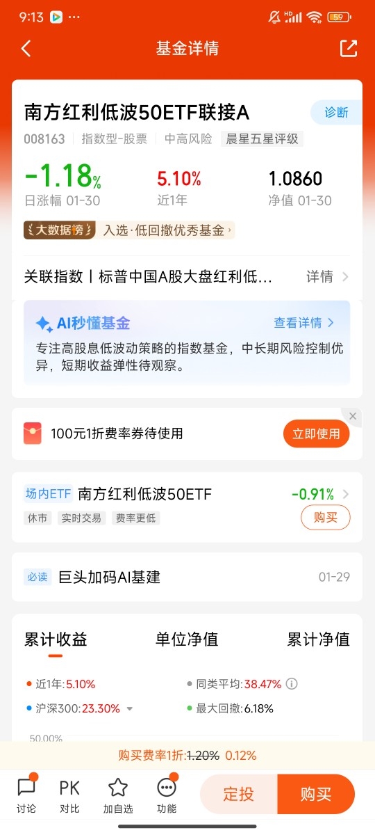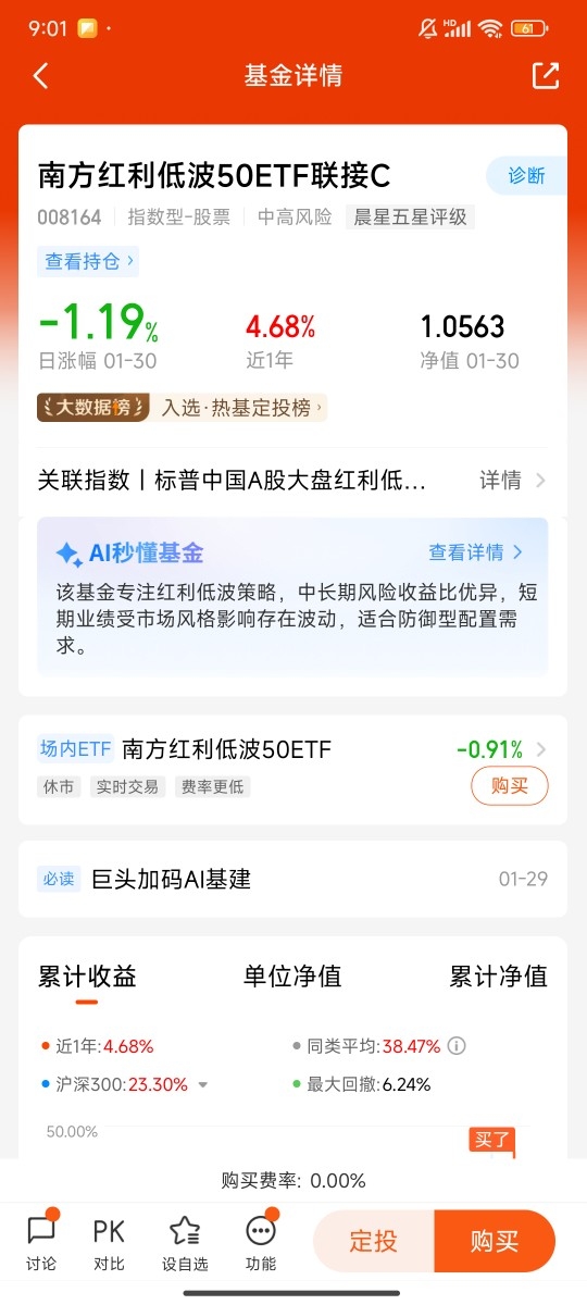 持有南方红利低波50ETF联接C的这一个多月,是我投资生涯中最安心、最踏实的一段时光。