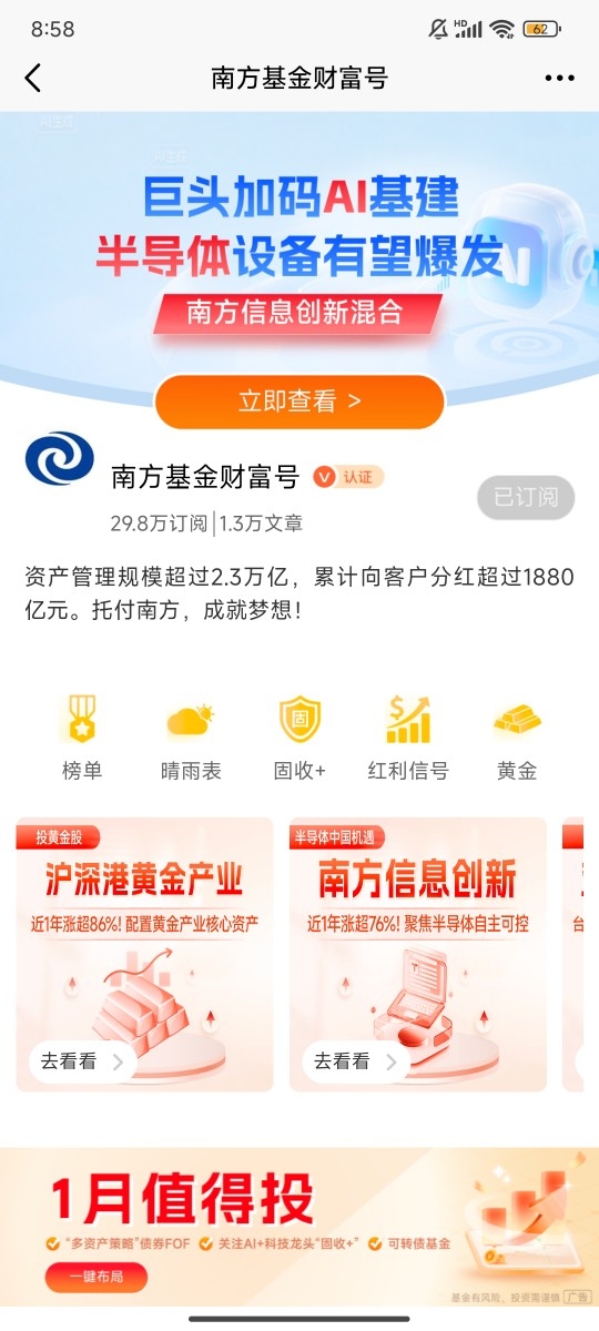 2026年开年的市场,用“上蹿下跳、人心惶惶”来形容再合适不过。热门赛道一日天堂一日地狱,前一天还在为持仓大涨窃喜,后一天就可能被深套套牢。作为在市场摸爬滚打多年的普通投资者,我早已过了追涨杀跌的年纪,越来越明白:在震荡不休的市场里,能让我睡个安稳觉的,从来不是暴涨的神话,而是稳稳的红利。正是抱着这样的想法,一个多月前,我入手了南方红利低波50ETF联接C,这段时间的持有体验,让我愈发笃定:红利是当下市场的“定海神针”,而这只基金,就是我心中最称心的稳健之选。今天,我想把自己的投资故事、对红利后市的思考,以及这只基金的全方位测评,毫无保留地分享给大家,希望能给同样在震荡中迷茫的朋友一些启发。$南方中证国新港股通央企红利ETF发起联接C$