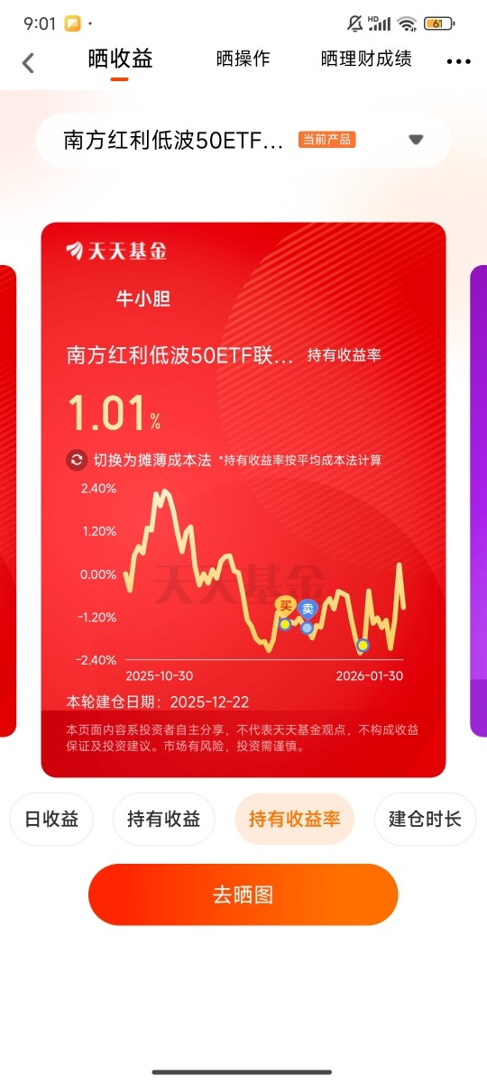 基于对红利后市的看好,以及对南方红利低波50ETF联接C的认可,我也制定了清晰的后续投资策略:一是坚定长期持有,不被短期市场波动干扰,不盲目追涨杀跌,依托基金的稳健表现,分享红利资产的长期收益;二是适度加仓布局,利用市场调整的机会,逢低分批加仓,进一步提升红利资产在组合中的占比,强化组合的抗风险能力;三是灵活配置优化,将这只基金作为组合的核心压舱石,搭配少量优质成长基金,构建“红利为主、成长为辅”的均衡组合,既守住稳健底线,又把握成长机会;四是坚守分红再投资,将每月收到的现金分红继续投入基金,通过复利效应,实现资产的长期增值。