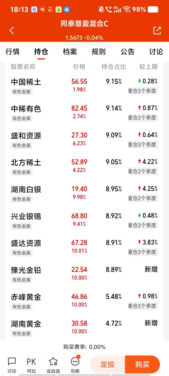 这个基金持有白银黄金是不错,但偷吃现象严重,经理不地道。我贴的图是今天这个基金的十大重仓股的涨幅,我们看看这个经理今天晚上的最后结果,希望名副其实!