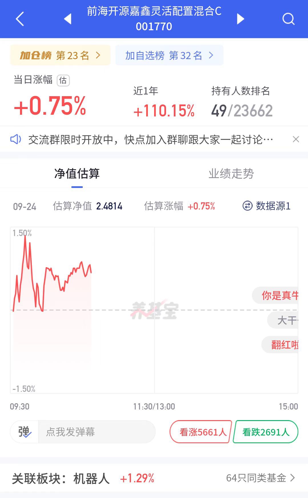 要说近一月整体业绩,机器人给力的就是$前海开源嘉鑫混合C$ 了,领先一些,而且每次反弹都比较强势,今天稳住还能吃肉