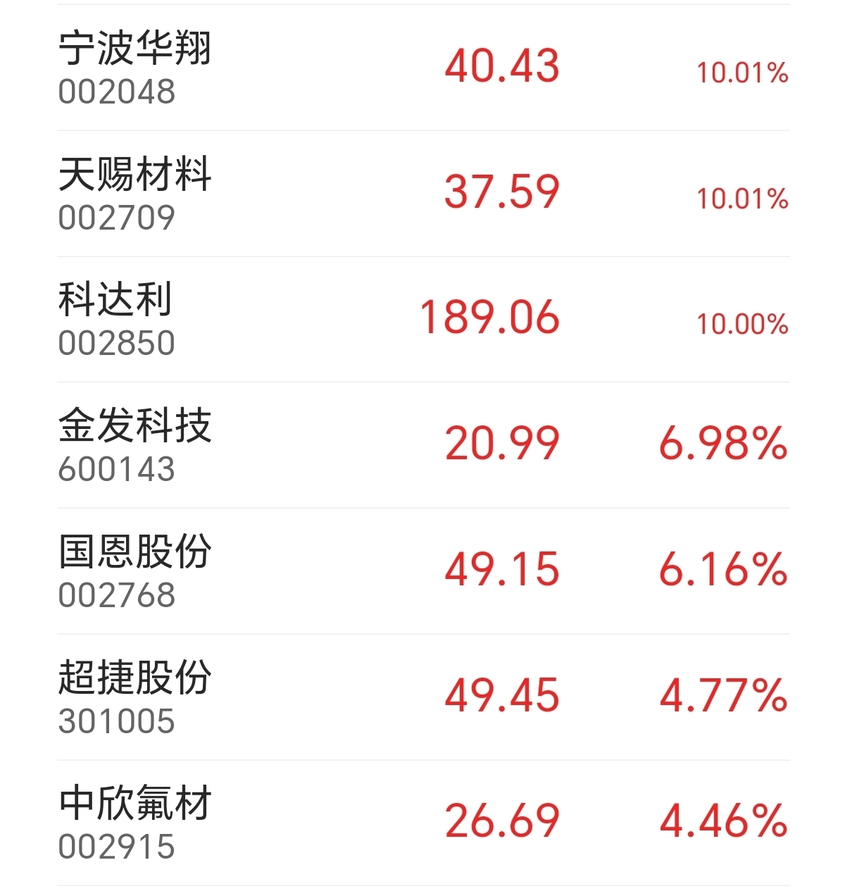 上面截图中的宁波华翔、天赐材料是特斯拉和宇树科技产业链,氟化工相关个股,同时也是固态电池概念。因此,我继续看好大师兄明天的表现!
