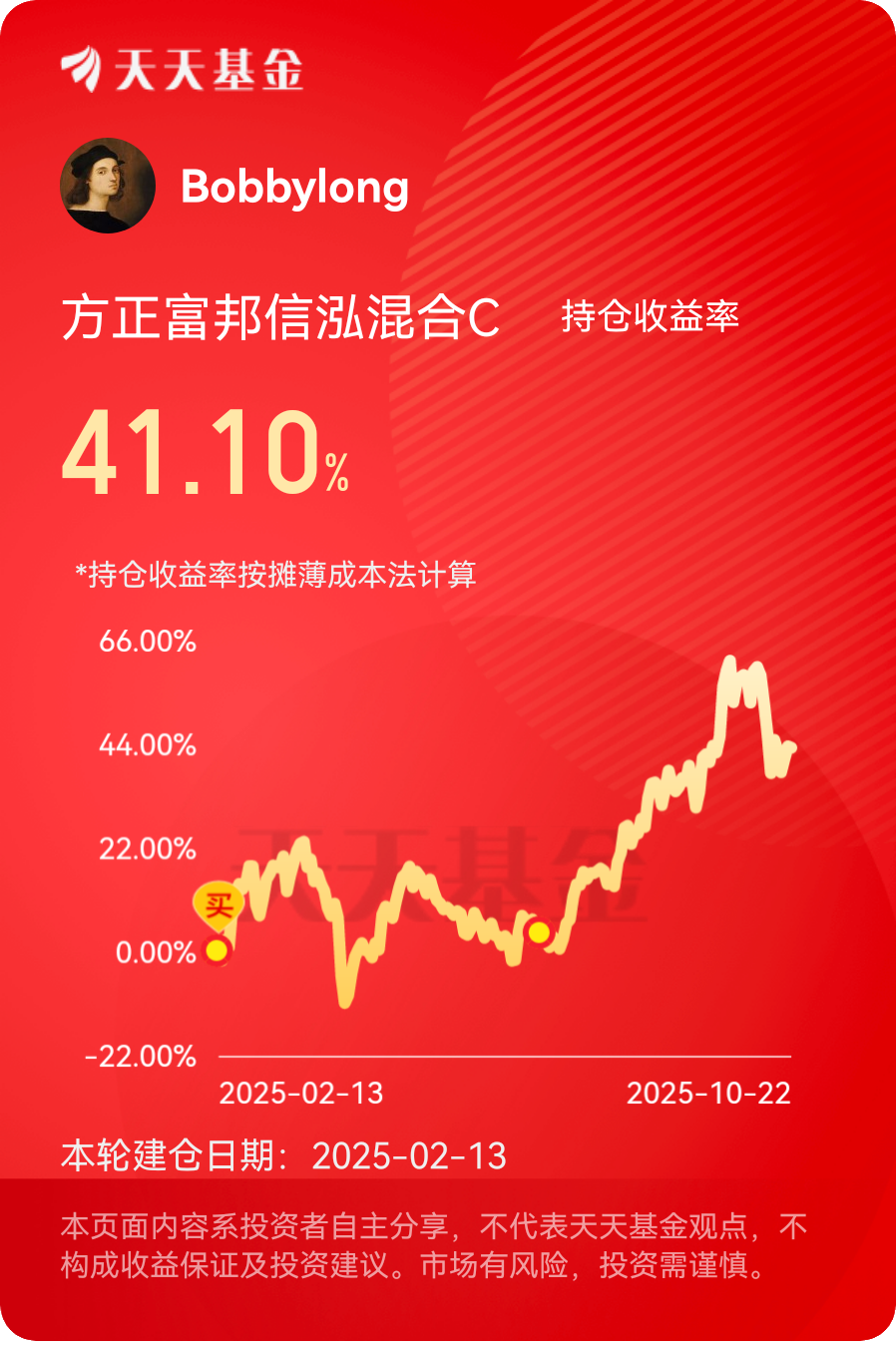 泓子最近跑赢鹏华和永赢了,不枉我转过来,保持住!$方正富邦信泓混合C$ #晒收益#