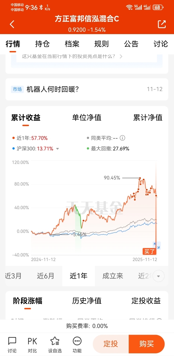 根据经验,我卖了就该涨了,这把偏不卖,机器人赛道明年有大机会,现在跌我只买,钱就当放里面存活期了,后面爆发一两天就给涨起来了。