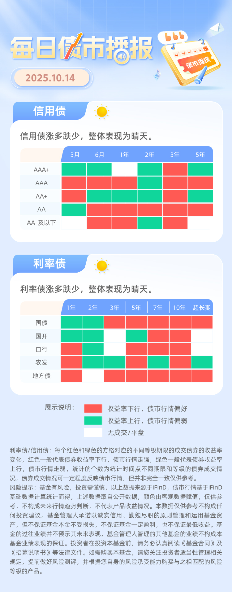 10月14日债市播报:信用债晴天,利率债晴天
