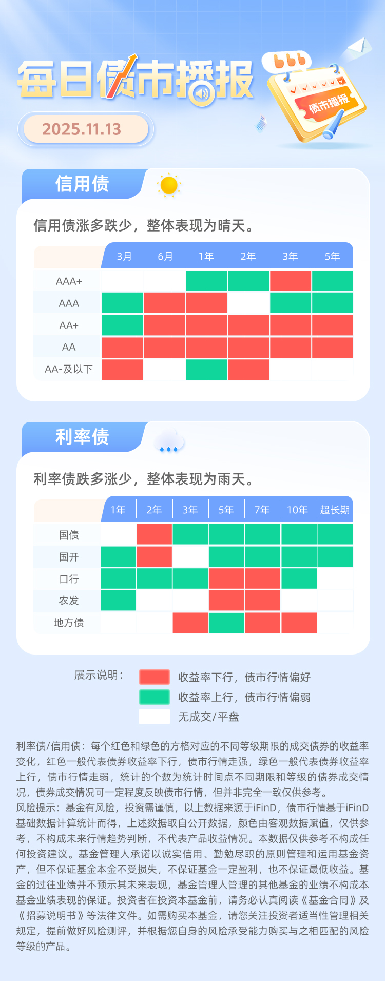 11月13日债市播报:信用债晴天,利率债雨天