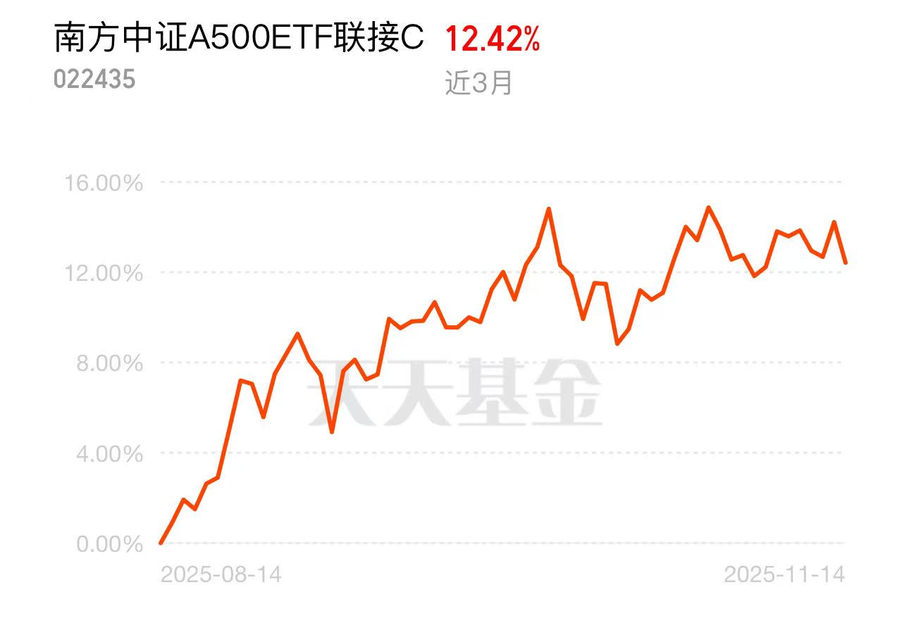 最近和身边的朋友交流,发现大家普遍感觉指数涨了,但自己的账户却没太大起色。这让我更坚定地认为,在4000点这样的震荡市里,跟上市场平均表现或许比追求超额收益更实际。$南方中证A500ETF联接A$(022434)跟踪的中证A500指数,历史来看长期走势与市场整体方向吻合度较高,而且由于行业分散,波动相对某些主题指数会平缓一些。指数注重各行业龙头企业的选取,这些公司一般经营相对稳健,在明年经济可能逐步复苏的背景下,或许有更确定的业绩体现。基金的低费率特点,在长期复利积累中能体现出价值。对于我这样的普通投资者来说,这是一种承认自己无法精准预测市场,转而追求市场平均回报的务实选择。#科技热点摊开业啦#