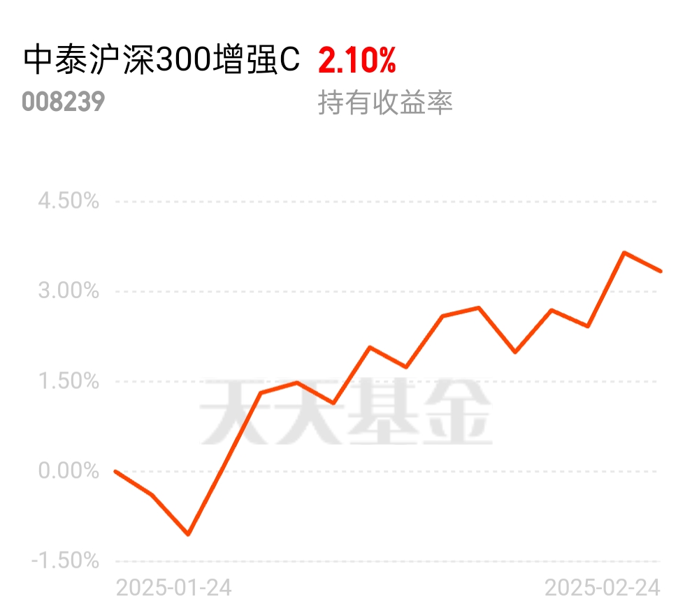 $中泰沪深300增强C$靠着沪深300选好股打底,再优化配置,就算有波动心里也有