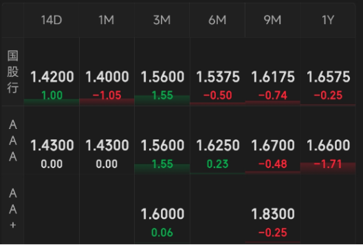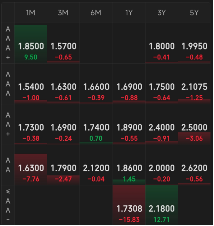 同业存单:阴天,涨跌不一。