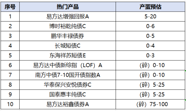 热门产品产蛋预估:(根据16:00行情预测,仅供参考,以实际产蛋为准)