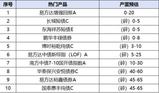 热门产品产蛋预估:(根据16:00行情预测,仅供参考,以实际产蛋为准)