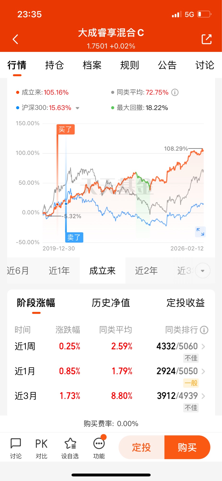 $大成睿享混合C$走得慢走得长,道理都懂,但坚守真是一件很难做到的事情,有比较有