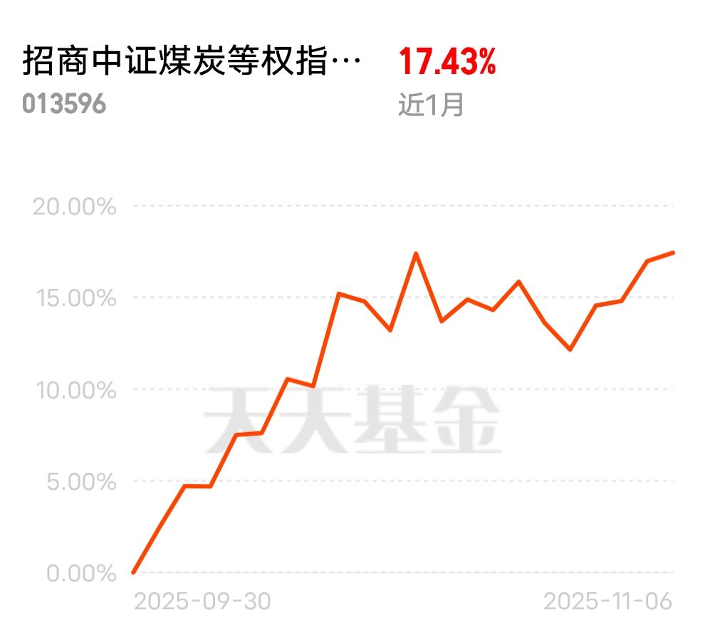 制造业投资保持两位数增长,拉动设备相关用煤需求,煤炭市场需求强劲。招商中证煤炭等权指数C近1个月涨幅达17.43%,今早盘破1%,贴合制造业投资增长,投资更有潜力。