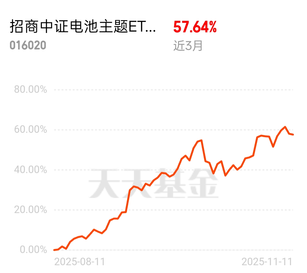 现在电池产业链龙头企业盈利持续改善,行业格局越来越好,招商中证电池主题ETF联接C表现超亮眼,近三个月大涨57.64%,近一年收益排名第一,昨天波动时跌得最少,跟着龙头有肉吃。