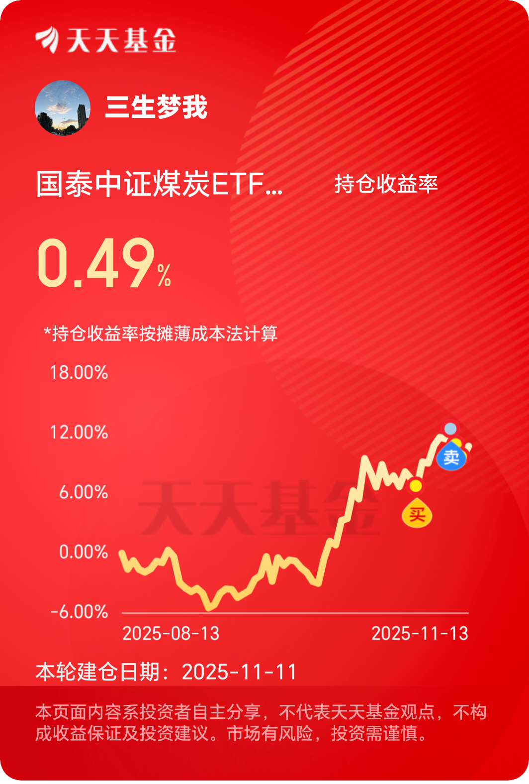 #观点搭子团火热招募中!# 煤炭是我为数不多盈利的产品,不是一两年,是始终!!!#晒收益# 昨天买,今天涨势,我超喜欢的模式!特别是今年冬季寒潮来袭的比较早,所以更看好煤炭!买买买,逢低就买!$国泰中证煤炭ETF联接C$