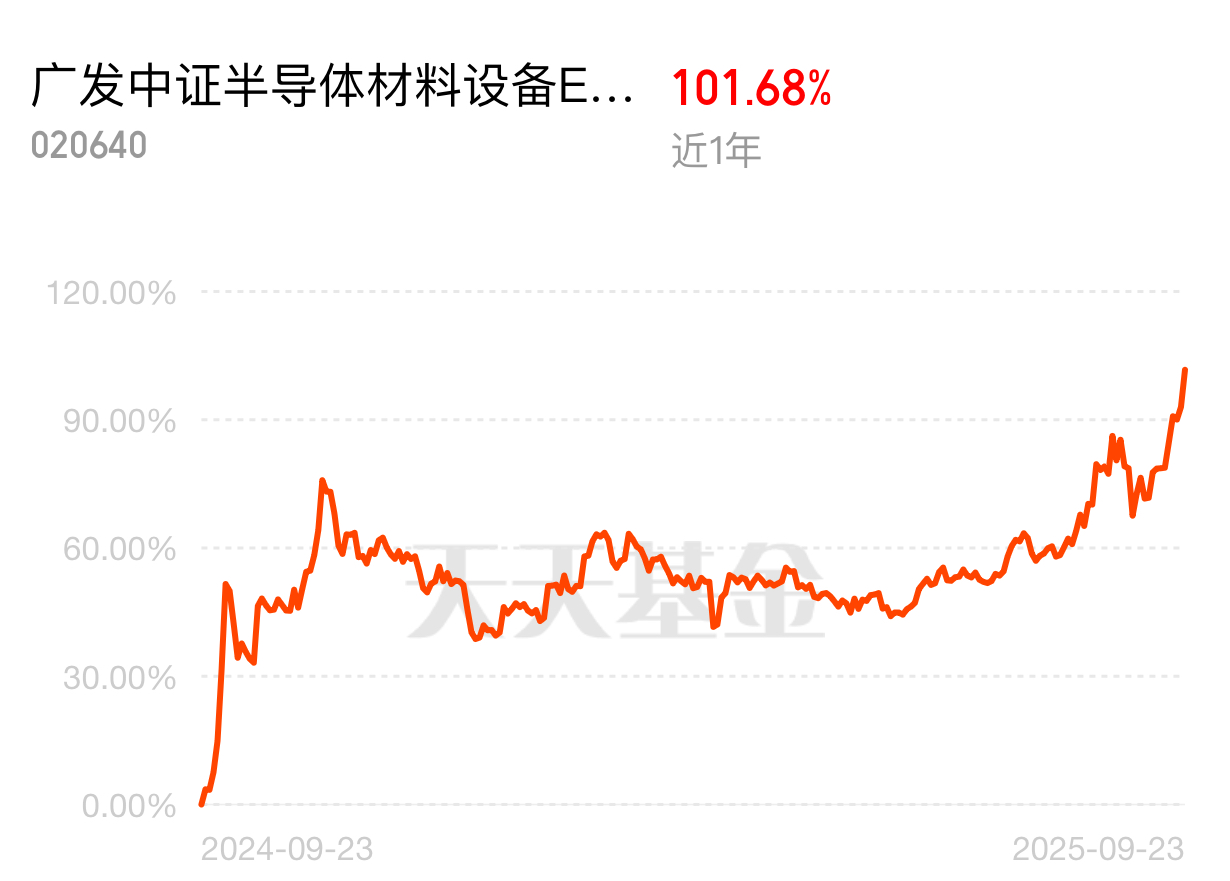 今天领涨的确实是半导体材料和设备环节。大基金三期重点也是投这个领域,$广发中证半导体材料设备ETF发起式联接C$